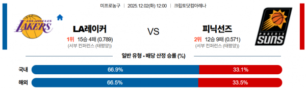 12월 2일 NBA LA레이커 vs 피닉선즈
