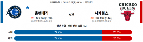 12월 2일 NBA 올랜매직 vs 시카불스