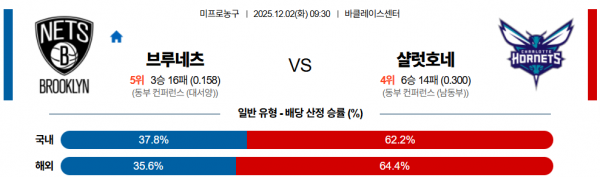 12월 2일 NBA 브루네츠 vs 샬럿호네