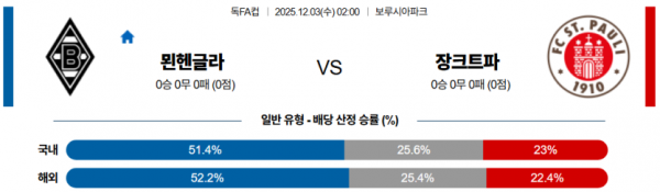 2025-12-03 02:00 독일 FA컵 묀헨글라트바흐 FC 장크트파울리