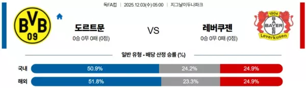 2025-12-03 05:00 독일 FA컵 보루시아 도르트문트 레버쿠젠