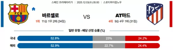 2025-12-03 05:00 라리가 FC 바르셀로나 AT 마드리드