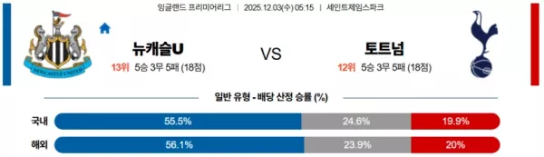2025-12-03 05:15 프리미어리그 뉴캐슬 유나이티드 토트넘 홋스퍼