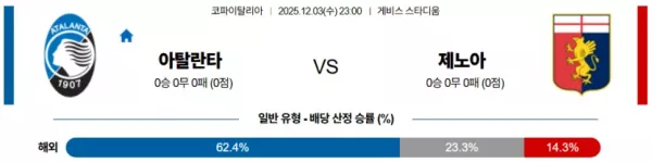 2025-12-03 23:00 코파 이탈리아 아탈란타 BC 제노아 CFC