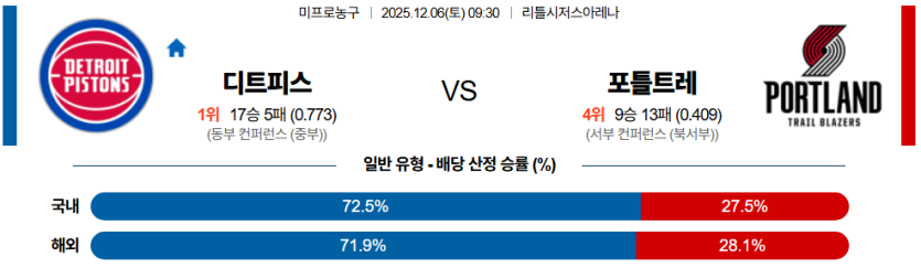 2025-12-06 09:30 NBA 디트로이트 피스톤스 포틀랜드 트레일블레이저