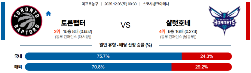 2025-12-06 09:30 NBA 토론토 랩터스 샬럿 호네츠