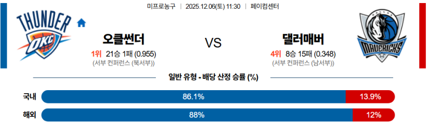 2025-12-06 11:30 NBA 오클라호마시티 썬더 댈러스 매버릭스
