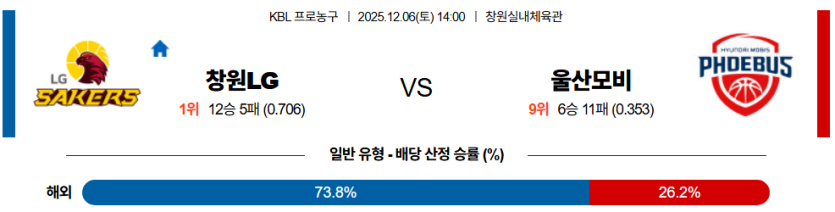 2025-12-06 14:00 KBL 창원 LG 울산 현대모비스