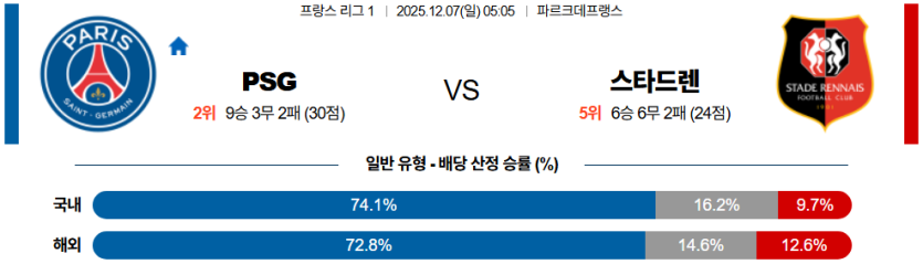 2025-12-07 05:05 리그앙 파리 생제르맹 스타드 렌 FC