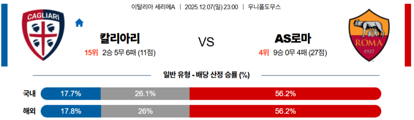 2025-12-07 23:00 세리에 A 칼리아리 칼초 AS 로마