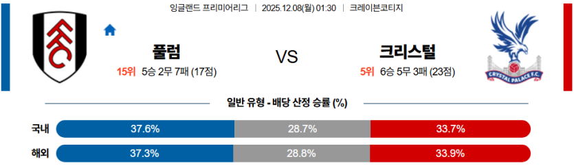 2025-12-08 01:30 프리미어리그 풀럼 크리스탈 팰리스