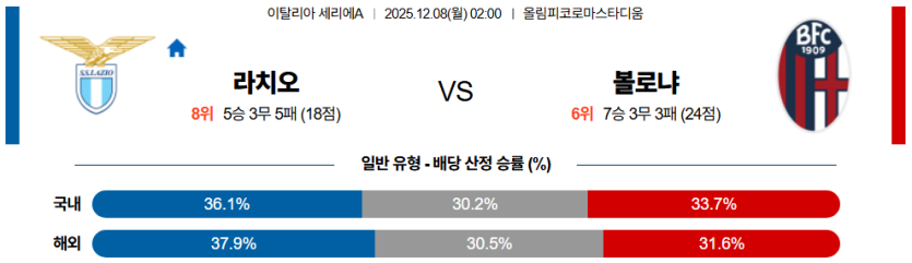 2025-12-08 02:00 세리에 A SS 라치오 볼로냐 FC