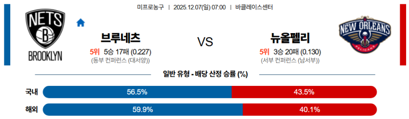 2025-12-07 07:00 NBA 브루클린 네츠 뉴올리언스 펠린컨즈