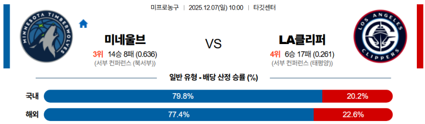 2025-12-07 10:00 NBA 미네소타 울브스 LA 클리퍼스
