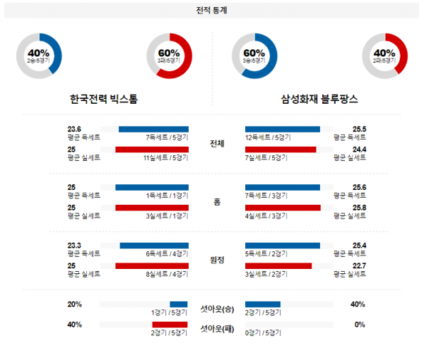 한전의 승리를 봅니다. 삼성은 요스바니가 언제든 에이스로 확실하게 위기를 넘겨줄 수 있습니다. 그러나, 김정호와 신장호등 국내 아웃사이드히터진의 경기력 기복은 분명하게 있습니다. 외인 공격수 대결에서는 뒤질 수도 있지만 서재덕과 임성진이 화력에서 앞설 수 있고 신영석이 중앙에서 우위를 가져갈 한전이 승리할 것입니다.