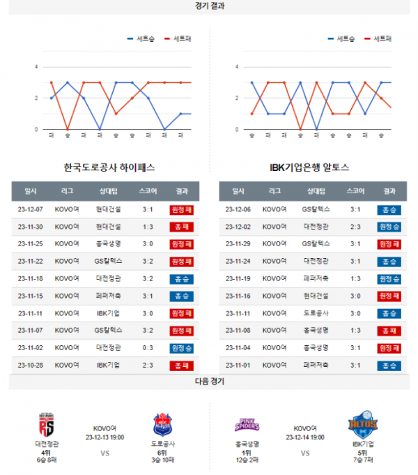 2023년 12월 10일 16시 V-리그 KOVO여 국내배구 한국도로공사 vs IBK기업은행