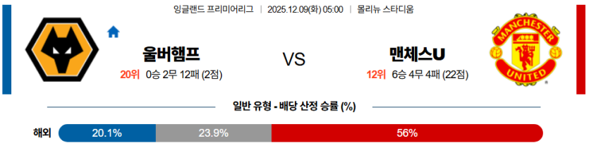 종합하면 전력만 놓고 보면 맨유가 위지만, 동기부여와 경기 준비도, 그리고 상대를 가볍게 볼 수 있는 심리적 방심 요소까지 고려하면, 오히려 울버햄튼이 흐름을 타는 순간 역배 승리가 충분히 성립될 수 있는 구도다.