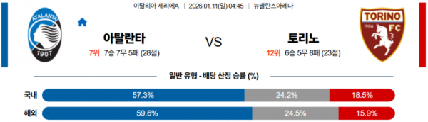 2026-01-11 04:45 세리에 A 아탈란타 BC 토리노 FC