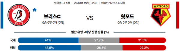2026-01-11 02:45 잉글랜드 FA컵 브리스톨 시티 FC 왓포드