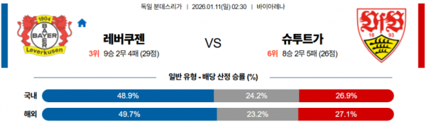 2026-01-11 02:30 분데스리가 레버쿠젠 VfB 슈투트가르트