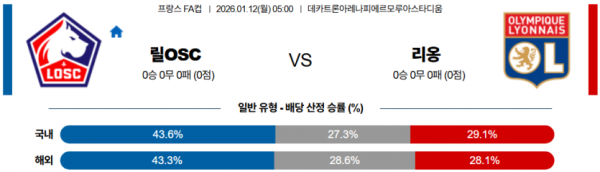 2026-01-12 05:00 프랑스 FA컵 릴 OSC 올랭피크 리옹