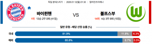 2026-01-12 01:30 분데스리가 바이에른 뮌헨 VfL 볼프스부르크