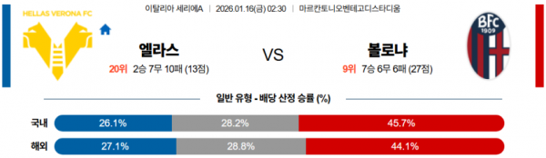 2026-01-16 02:30 세리에 A 엘라스 베로나 FC 볼로냐 FC