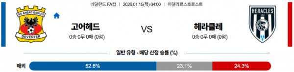 2026-01-15 04:00 네덜란드 FA컵 고 어헤드 이글스 헤라클레스 알멜로