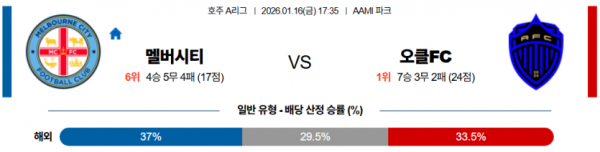 2026-01-16 17:35 호주 A리그 멜버른 시티 FC 오클랜드 FC