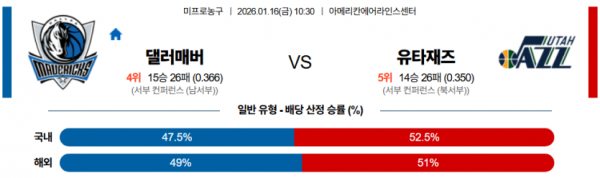 2026-01-16 10:30 NBA 댈러스 매버릭스 유타 재즈