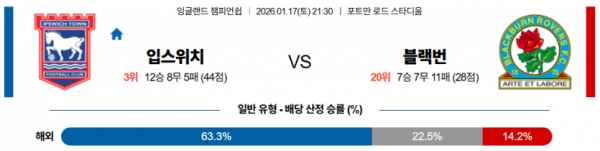 2026-01-17 21:30 잉글랜드 챔피언쉽 입스위치 타운 블랙번 로버스
