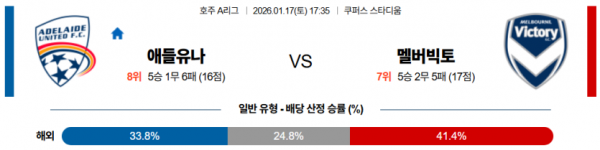 2026-01-17 17:35 호주 A리그 애들레이드 유나이티드 FC 멜버른 빅토리 FC