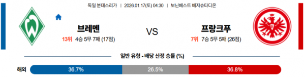 2026-01-17 04:30 분데스리가 SV 베르더 브레멘 프랑크푸르트