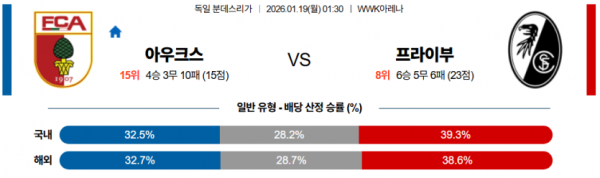 2026-01-19 01:30 분데스리가 아우크스부르크 SC 프라이부르크