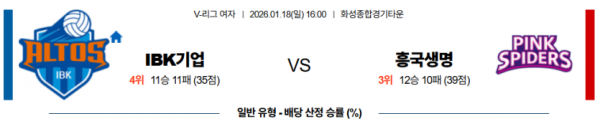 2026-01-18 16:00 V-리그 여자부 IBK 기업은행 흥국생명