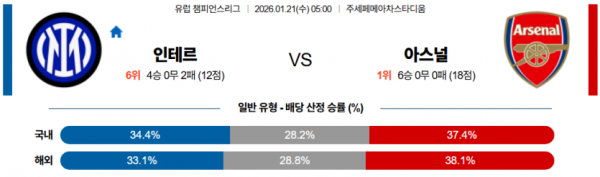 2026-01-21 05:00 UEFA 챔피언스리그 SC 인테르 아스널