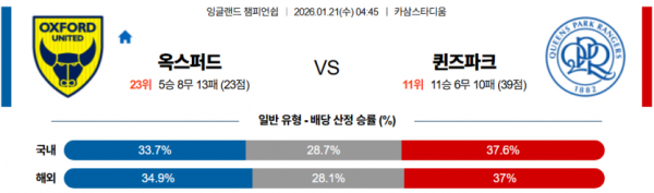 2026-01-21 04:45 잉글랜드 챔피언쉽 옥스포드 유나이티드 FC 퀸즈 파크 레인저스