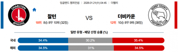 2026-01-21 04:45 잉글랜드 챔피언쉽 찰튼 더비 카운티