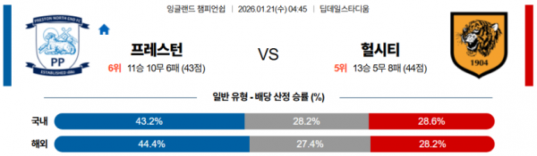 2026-01-21 04:45 잉글랜드 챔피언쉽 프레스턴 라이온스 헐 시티 AFC