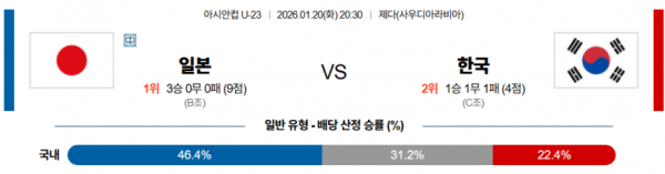 2026-01-20 20:30 U-23 아시안컵 일본 대한민국