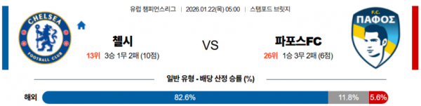 2026-01-22 05:00 UEFA 챔피언스리그 첼시 파포스 FC