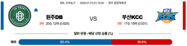 2026-01-21 19:00 KBL 원주 DB 부산 KCC