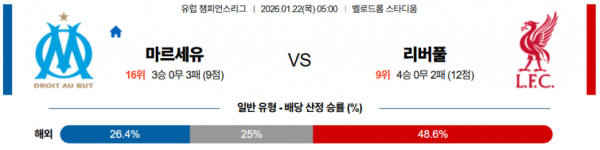 2026-01-22 05:00 UEFA 챔피언스리그 올림피크 마르세유 리버풀 FC
