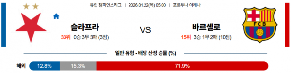 2026-01-22 05:00 UEFA 챔피언스리그 SK 슬라비아 프라하 FC 바르셀로나
