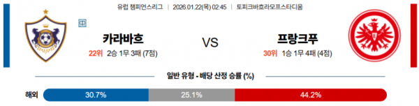 2026-01-22 02:45 UEFA 챔피언스리그 카라바흐 프랑크푸르트