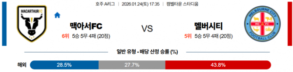 2026-01-24 17:35 호주 A리그 맥아서 FC 멜버른 시티 FC