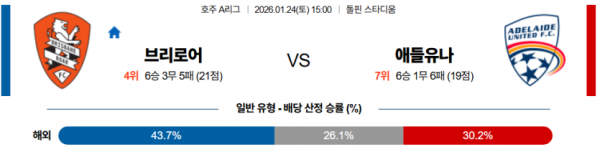 2026-01-24 15:00 호주 A리그 브리즈번 로어 FC 애들레이드 유나이티드 FC