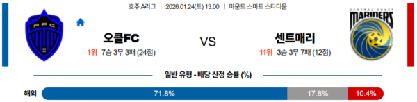 2026-01-24 13:00 호주 A리그 오클랜드 FC 센트럴 코스트 마리너스 FC