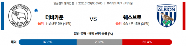 2026-01-24 05:00 잉글랜드 챔피언쉽 더비 카운티 웨스트 브로미치 앨비언