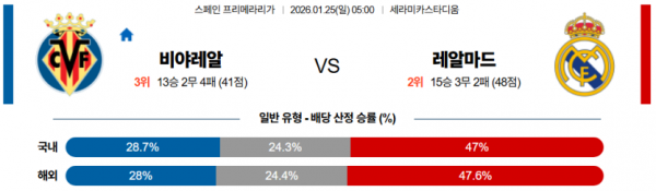 2026-01-25 05:00 라리가 비야레알 레알 마드리드